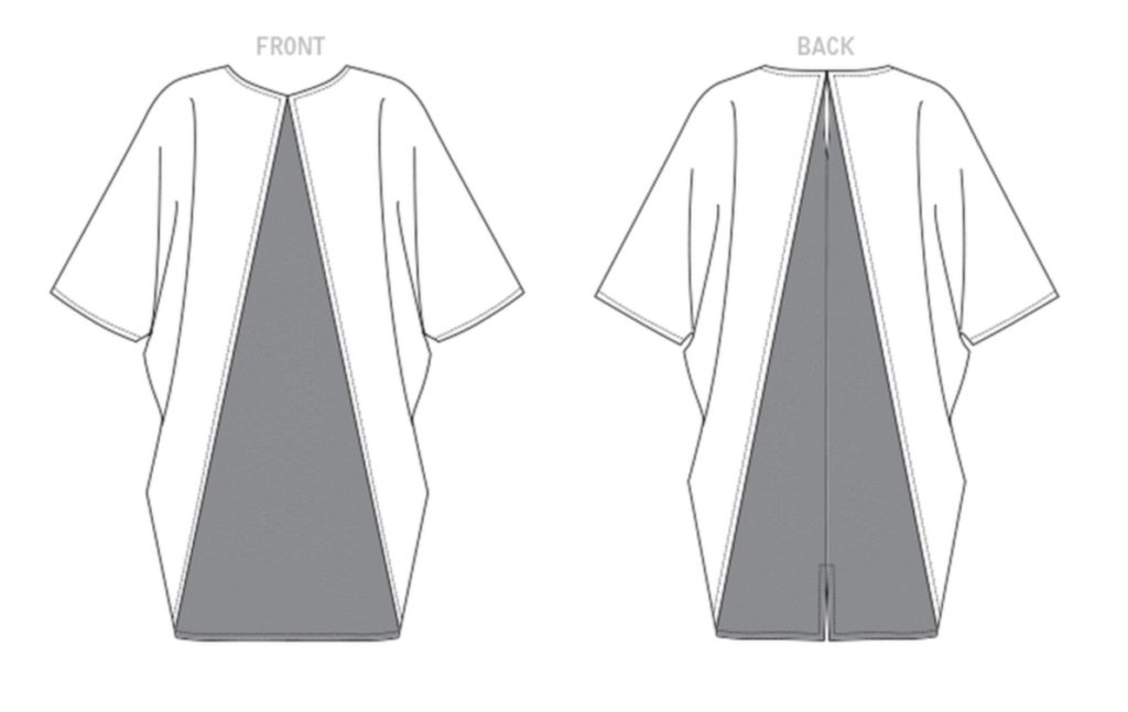 Oversized, color block dress with bat wing sleeves, back neck opening with hook & eye closure.